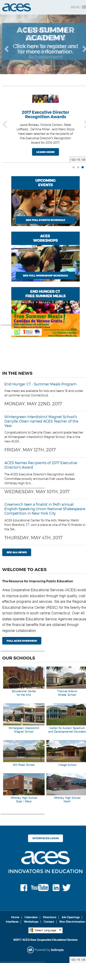Area Cooperative Educational Services (ACES) has been living its mission: To empower students, member districts, and others to meet educational and life challenges for close to fifty-years. ACES is the regional educational service center for the twenty-five communities in New Haven County. ACES is both a non-profit service organization and a school district that serves over 2,000 students in three magnet and five special education schools.