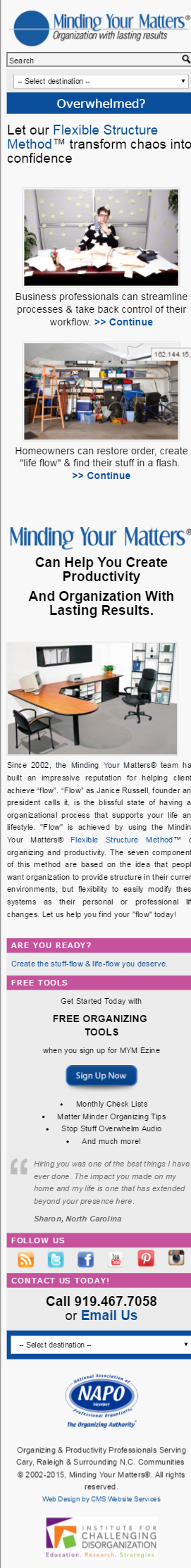 Minding Your Matters® is comprised of a team of capable, professional organizers with diverse backgrounds and experiences. http://www.mindingyourmatters.com