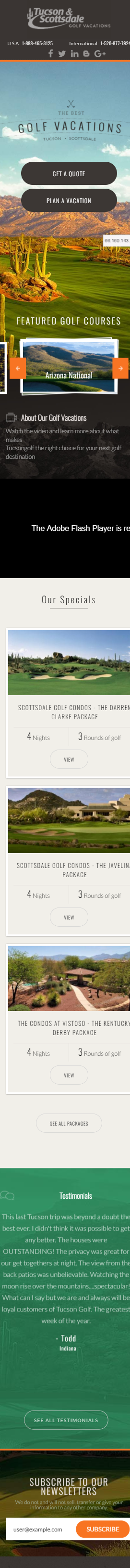 Tucson & Scottsdale Golf Vacations is a service-oriented corporation specializing in custom golf vacations, golf packages, golf schools, advanced tee times, tournament organization and corporate events for individuals and groups coming to Arizona from all over the world.