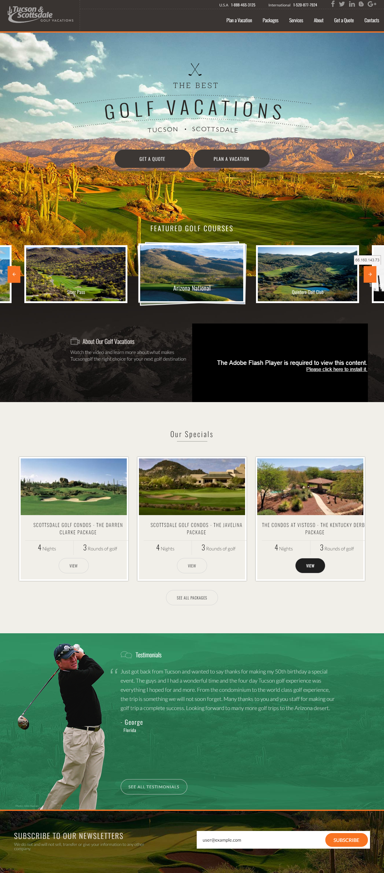 Tucson & Scottsdale Golf Vacations è una società specializzata in vacanze golf personalizzati, pacchetti di golf, scuole di golf, tempi di tee avanzati, organizzazione di tornei ed eventi aziendali per individui e gruppi che arrivano in Arizona da tutto il mondo.