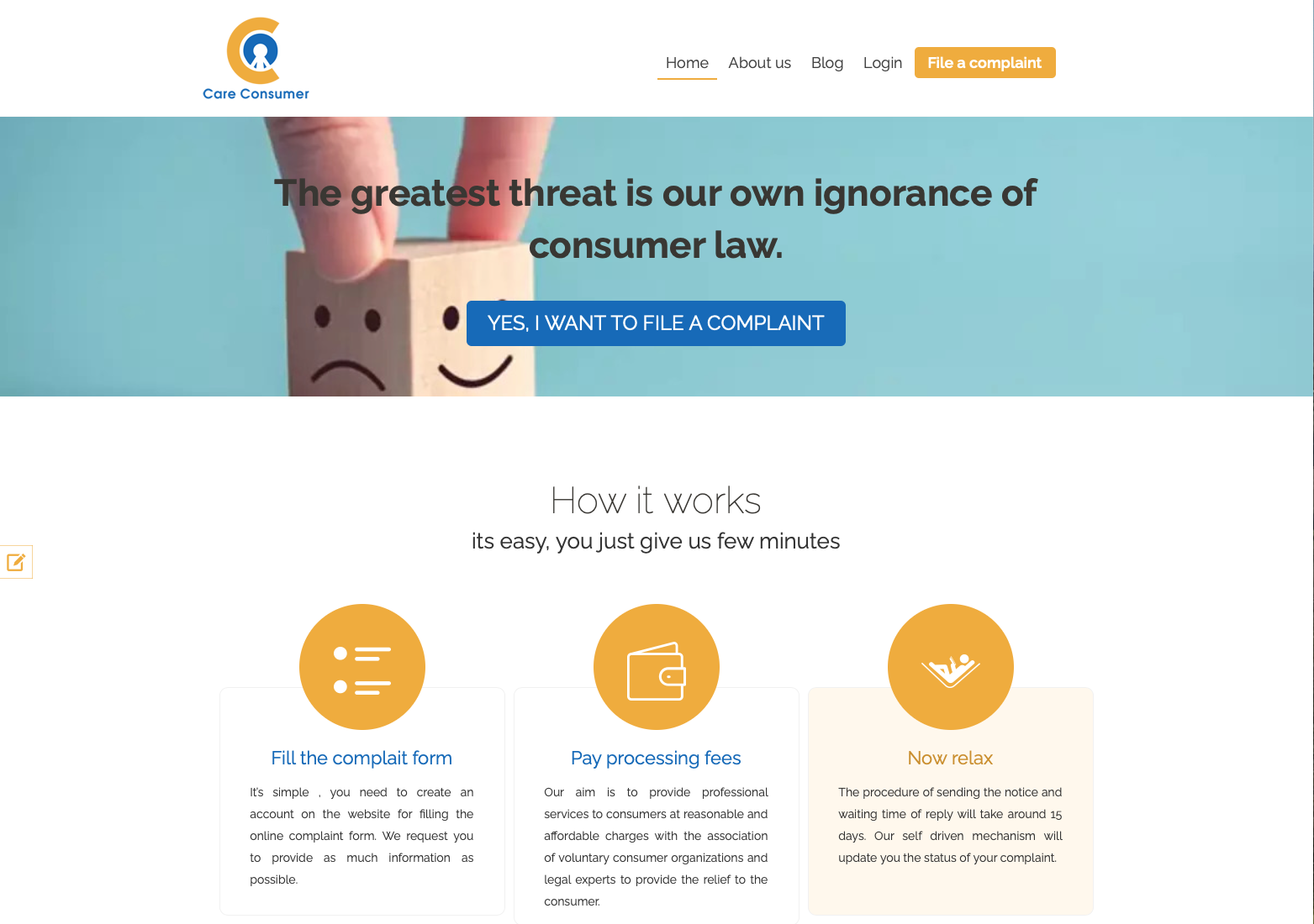 Careconsumer è una piattaforma tecnologica in cui i consumatori presentano reclamo inviando un avviso legale al fornitore di beni e servizi, contro lo sfruttamento dei consumatori e le loro pratiche non etiche. I nostri servizi coprono tutti gli aspetti della protezione dei consumatori nel mercato indiano.